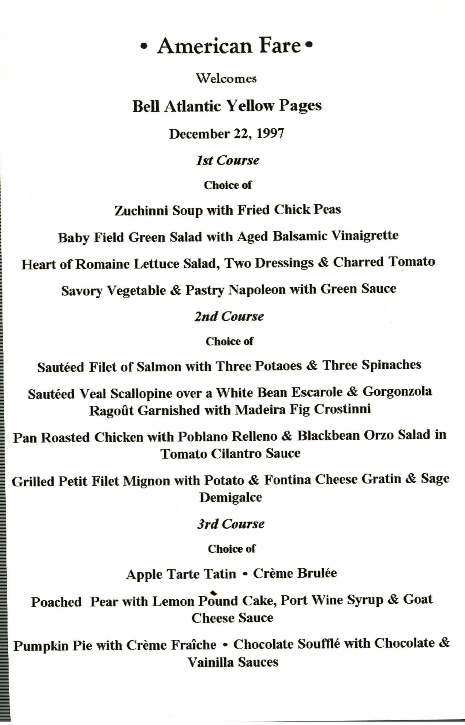 • Pencil Asparagus with Parma Proshiutto. Dijon • Lobster Salad in Puff Pastry and Lemon Hollandaise • Chateaubriand sliced, Crostini and Vidalia Onion Chutney